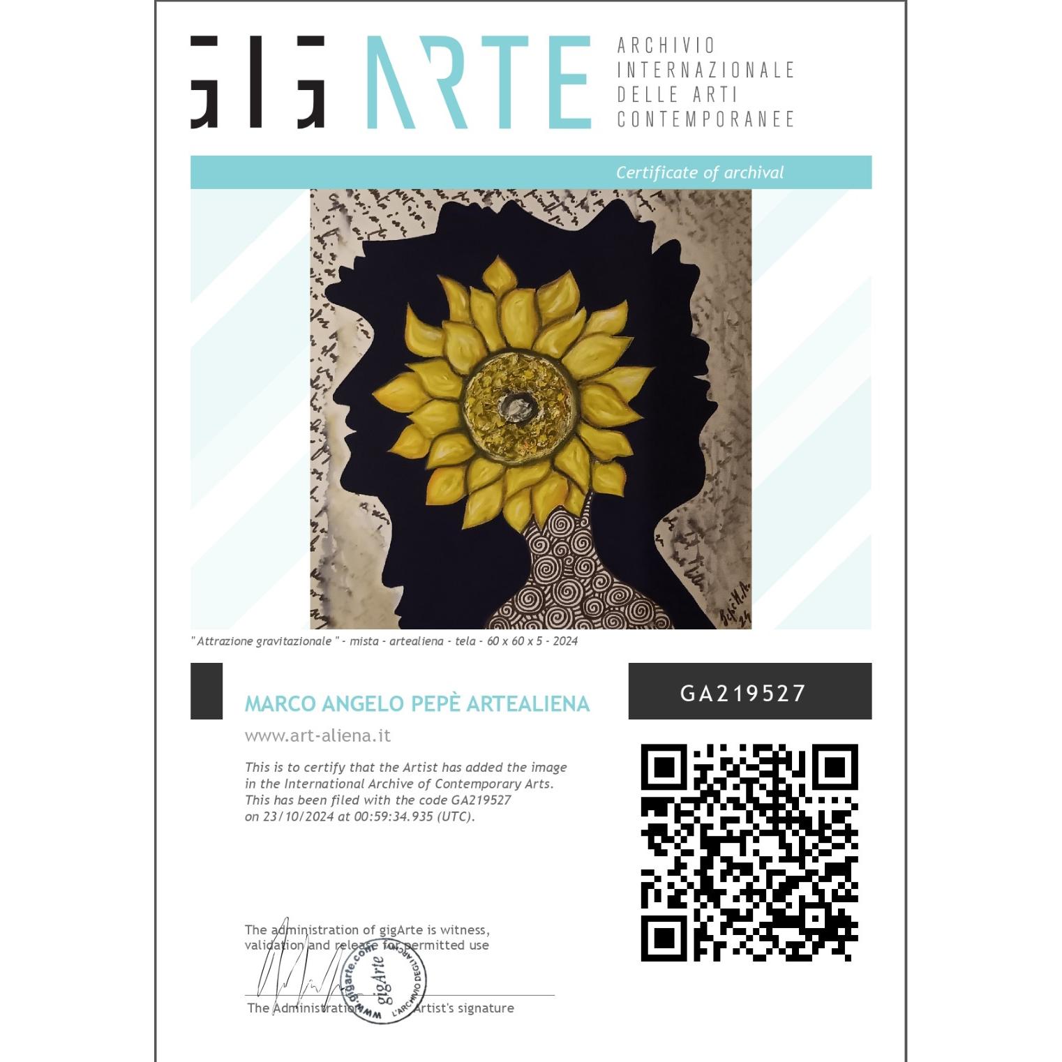 Si certifica che l'artista Marco Angelo Pepé mercoledì 23 ottobre 2024 ha archiviato la foto dell'opera GA219527 dal titolo "Attrazione gravitazionale "