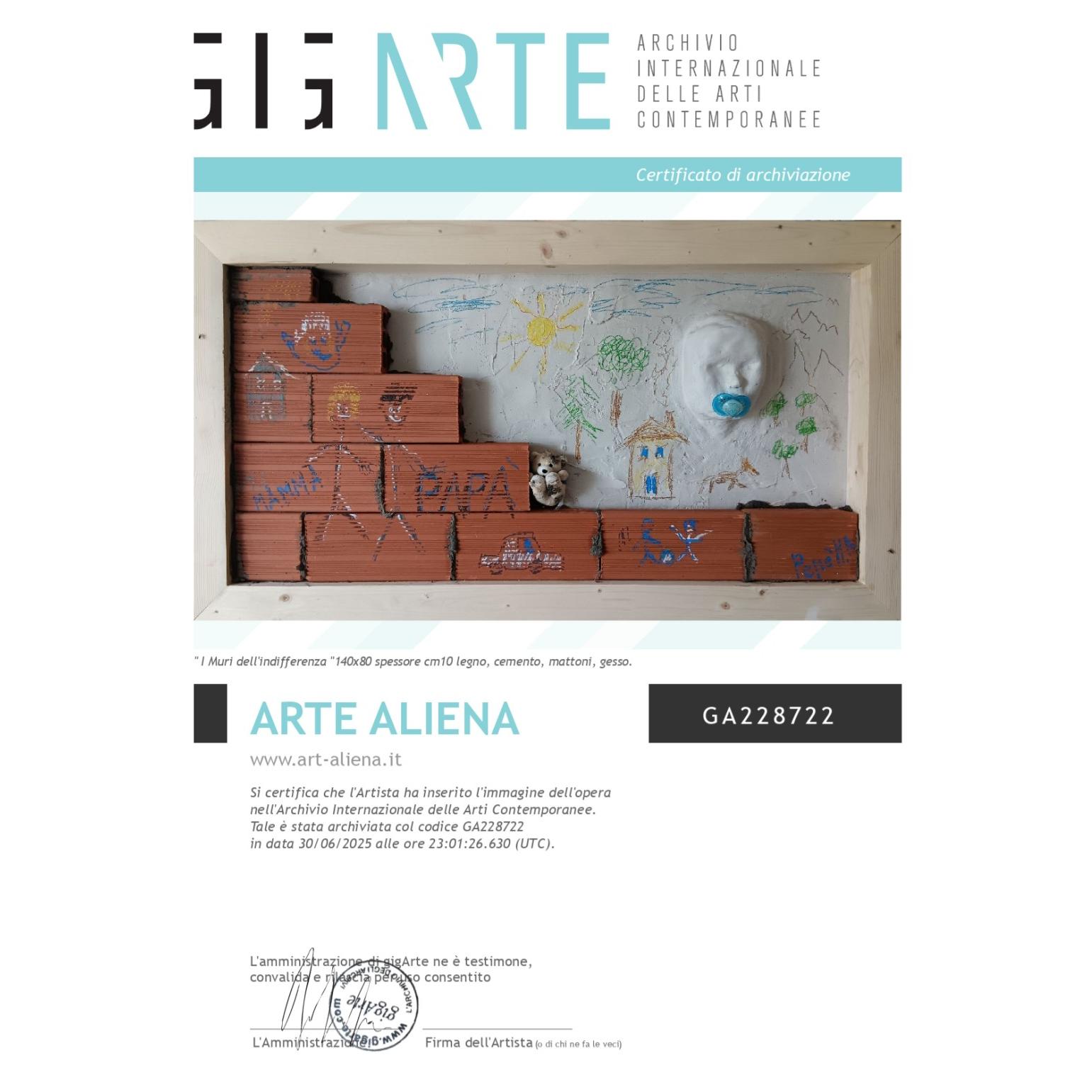 Si certifica che l'artista Marco Angelo Pepé lunedì 30 giugno 2025 ha archiviato la foto dell'opera GA228722 dal titolo "I Muri dell'indifferenza "