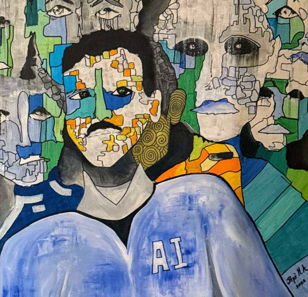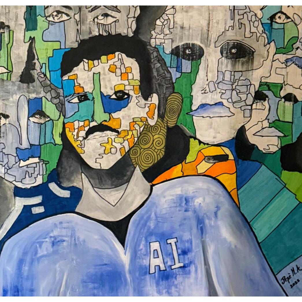 "Ho creato quest'opera per rappresentare il contrasto tra la tecnologia e l'anima umana. I visi offuscati e i colori grigi simboleggiano la perdita dell'umanità a causa della tecnologia mentre, in primo piano, c'è Nicola Tesla e alle sue spalle la sua anima rappresentata con colori caldi che brilla nonostante tutto. L'opera vuole sottolineare come la tecnologia possa portare via qualcosa di essenziale dalle persone ma, allo stesso tempo, le loro anime continuano a brillare, resistenti."