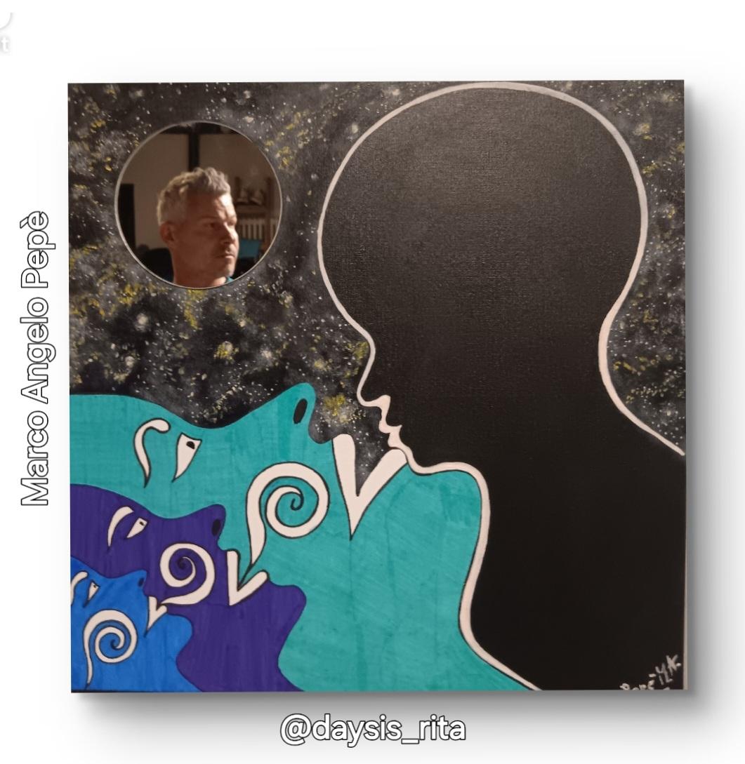 Passo la vita meditando su tutto ciò che non afferro, come Sidarta si illumino sulle rive di un lago. Da tempo seguo la Dott. @daysis_rita , i suoi scritti e la sua vibrazione mi hanno portato a questa tela."Ho creato un universo di tela con 4 sagome che rappresentano le diverse dimensioni dell'essere umano: l'anima universale/Dio, l'anima nera dell'universo, il corpo e lo spirito. Lo sfondo attorno rappresenta l'universo stesso, e lo specchio che riflette la luce è come la luna che riceve la luce del sole e la riflette verso di noi. La mia opera vuole essere una riflessione sulla nostra esistenza all'interno dell'universo e sulla nostra relazione con la luce e l'oscurità. Finché siamo solo specchi che riflettono la luce e non la lasciamo entrare nella nostra "casa interiore", rimaniamo solo degli specchi, riflettendo il passato senza evolverci. La mia opera è un invito a esplorare e a integrare le diverse parti di noi stessi, per scoprire la nostra vera natura e il nostro posto nell'universo."